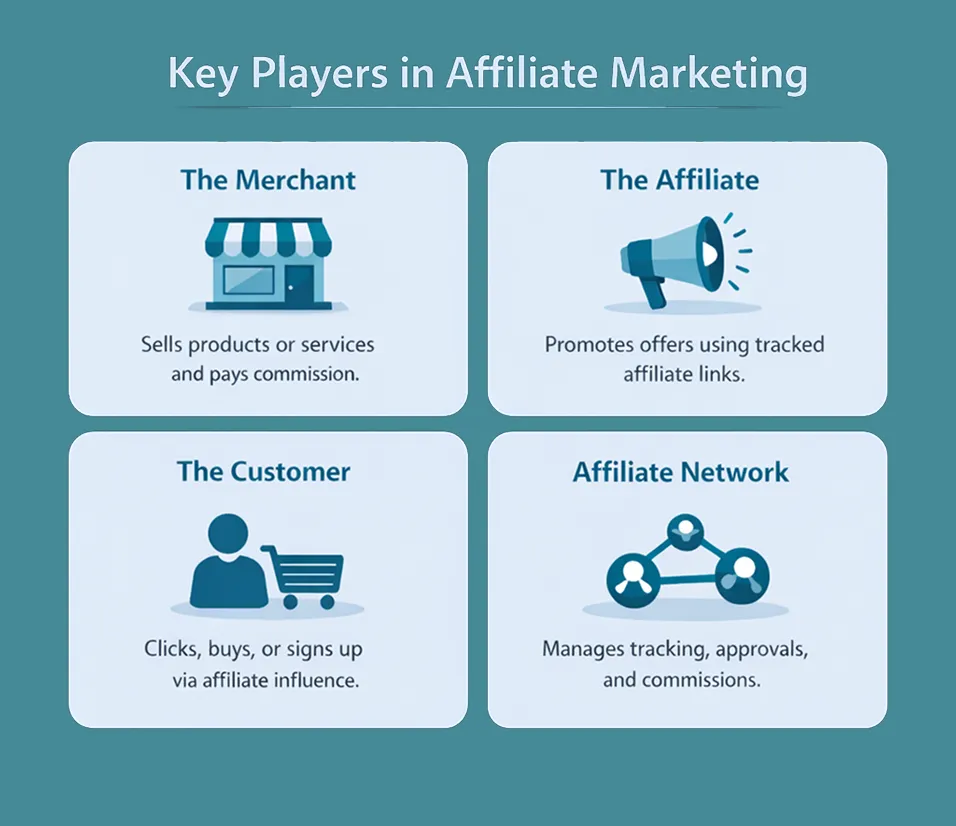 - The Affiliate: The party promoting the product or service, using unique tracking links.