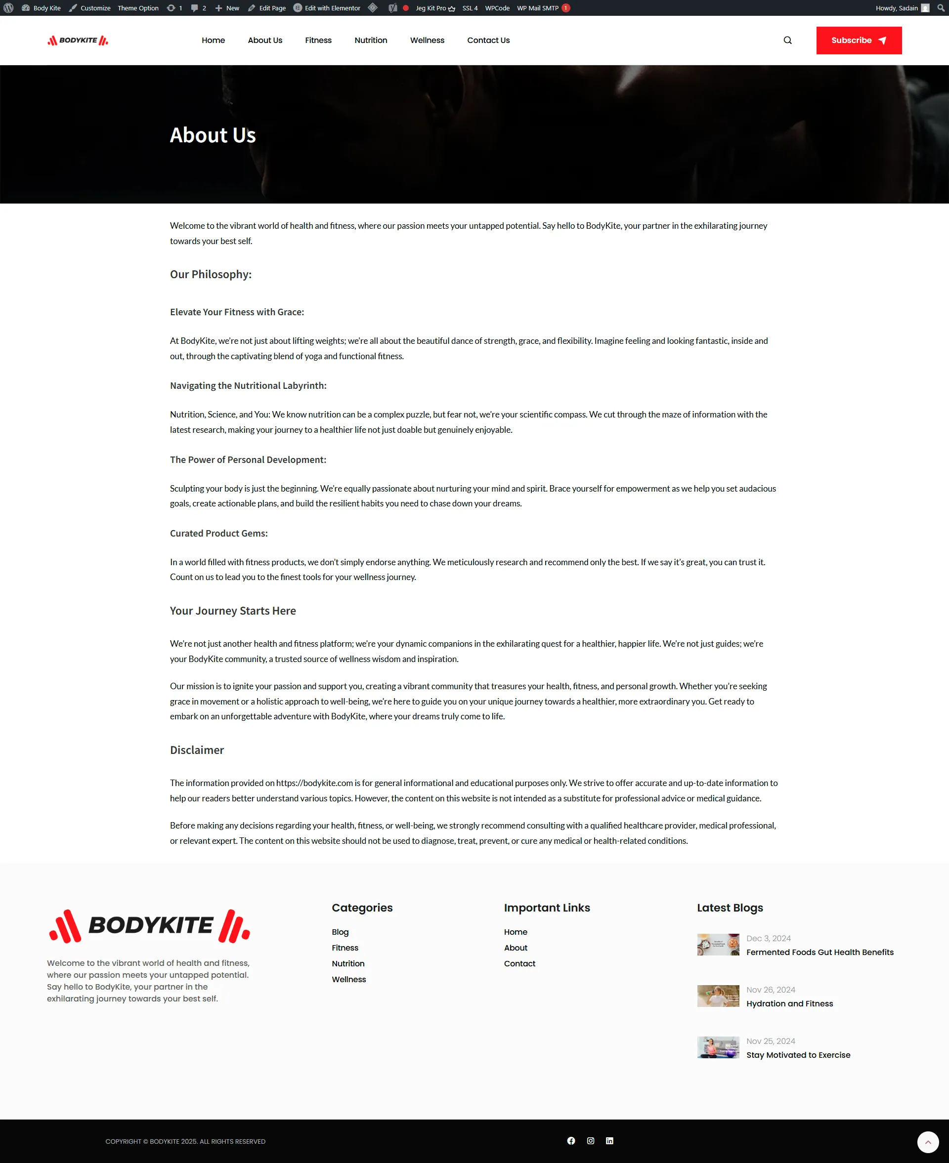 Alongside design, we developed strategic content to amplify BodyKite’s voice and drive measurable growth: concise website copy (hero headlines, program descriptions, trainer bios, FAQs and microcopy), social captions and campaign hooks, SEO-focused blog articles, and automated email sequences for onboarding, reminders, and re-engagement. Every piece of content is written to motivate and convert—hero lines like “Train with Purpose. Thrive Every Day.” set the tone, program descriptions highlight clear benefits, trainer bios build trust, and social/email copy keeps the community engaged and returning.