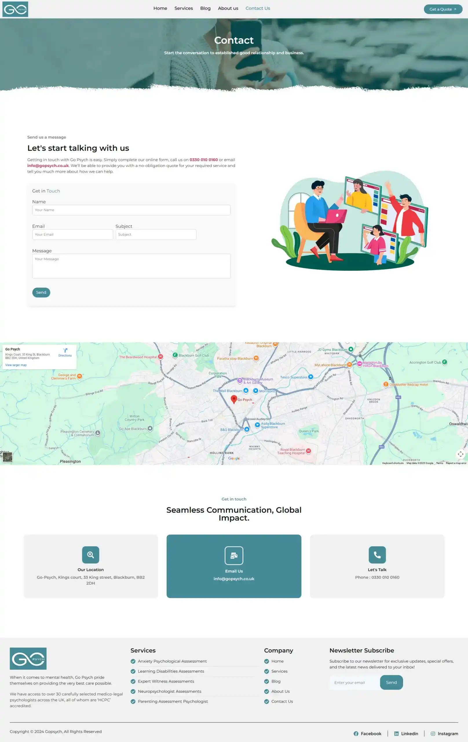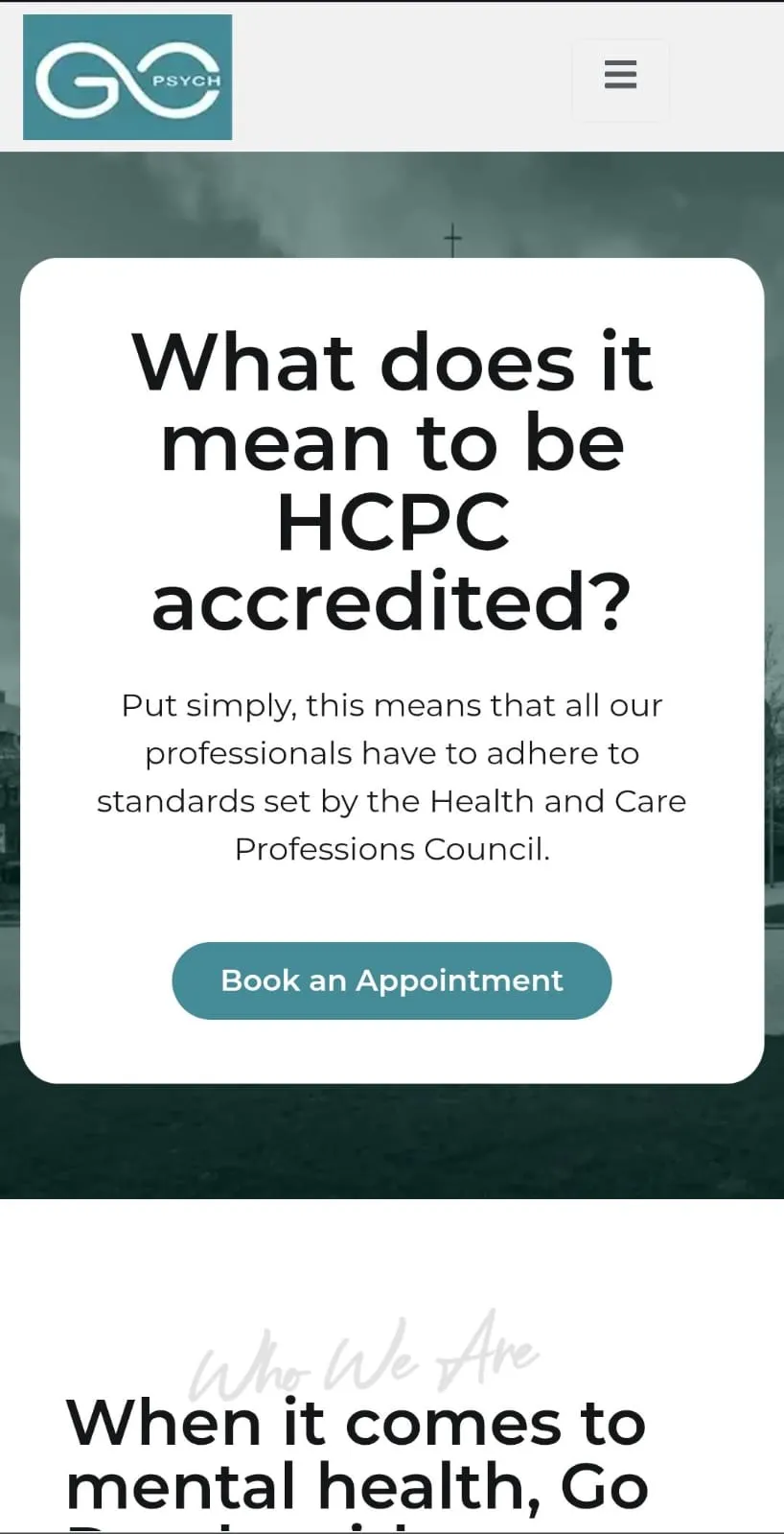 We created a streamlined digital experience that mirrors GoPsych’s client-first ethos, making it simple for solicitors, insurers, and private clients to connect with the right psychologist. The website’s structure highlights service categories such as industrial deafness, family law, domestic violence, and personal injury, supported by clear CTAs and easy-to-use enquiry forms. The visual identity was crafted to project professionalism and care, using a calm colour palette, clean typography, and credibility-focused design.
