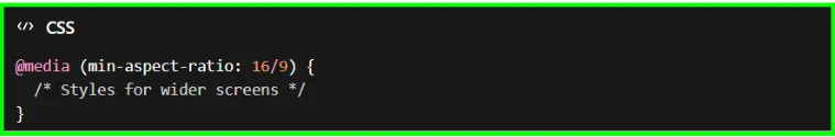 The focus of aspect ratio media queries is on the relationship between height and width of the screen. These ratios do not target a specific device, rather, they use the height and width of the viewport for layouts. These queries give more control, especially for heavy and complex media layouts. Example is: